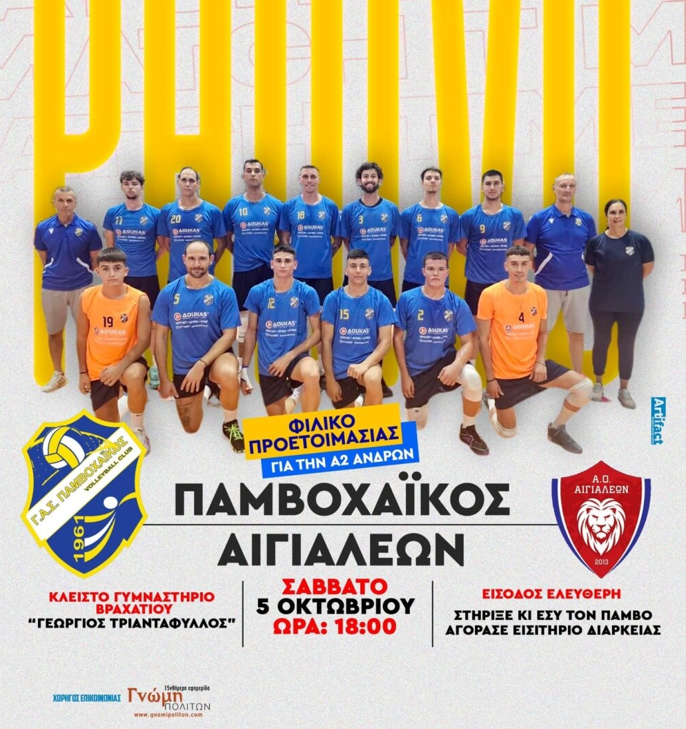 🏐 Το 3ο κατά σειρά φιλικό θα δώσουν οι Άνδρες το Σάββατο 5 Οκτωβρίου με την ομάδα του Αιγιαλέων